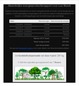 In het bijgevoegde plaatje is de opbrengst van onze zonnepanelen op he dak van ons kerkgebouw te zien , ook van de maand januari , laat maar komen die zon .
